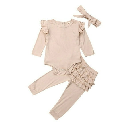 3pcs Newborn Baby Girl Romper Bodysuit Ruffle Pants Leggings