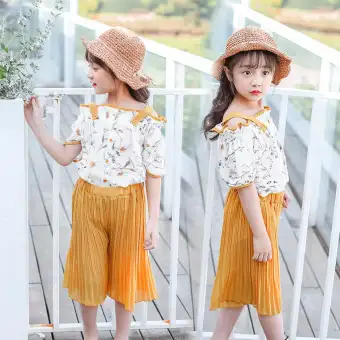 2019 New Yellow Floral 2pcs Set Kids Baby Girl T Shirt Tops Floral