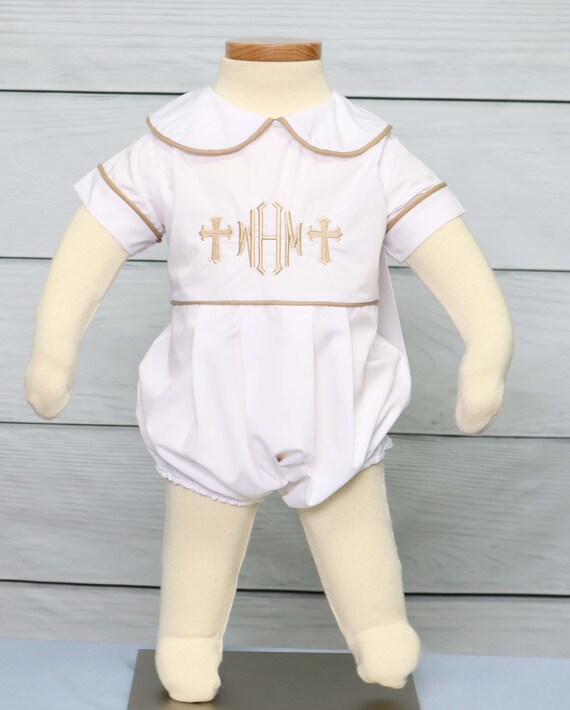 White Christening Romper For Baby Boy White Baptism Rompers For