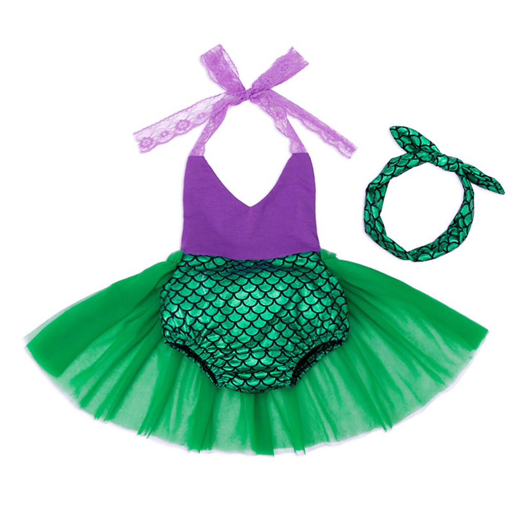 Baby Girls Mermaid Romper Kids Sling Tulle Costume With Headband