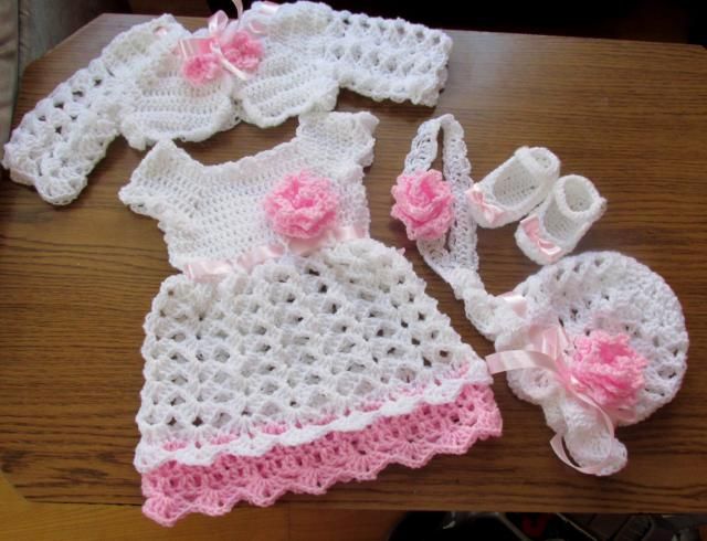 Crochet Baby Set Baby Dress Bolero Hat Shoes And Headband