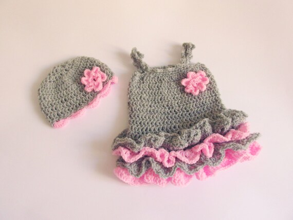 Ready To Ship Newborn Girl Crochet Outfit In Grey And Peach