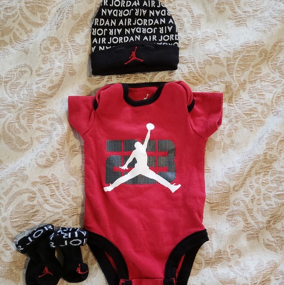 Nike Jordan Baby Boy Clothes 3 Piece Set 0 6 Months Bodysuit Hat