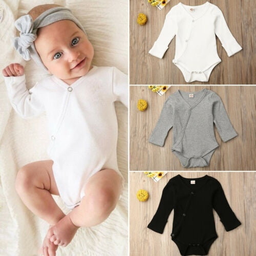 Newborn Baby Boys Girls Clothes Solid Color Romper Bodysuit