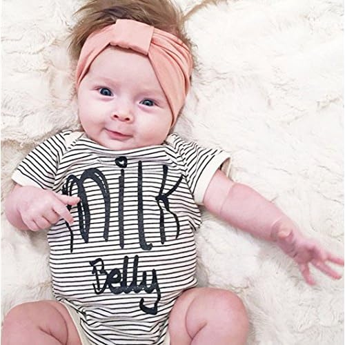 Infant Baby Girls Boys Bodysuit Striped Romper Milk Belly Letter