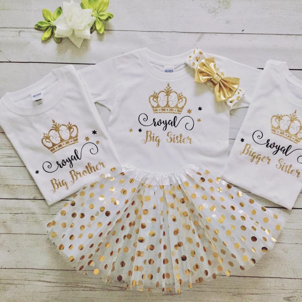 Royal Big Sister Brother Baby Shower Family Matching Outfits Royal