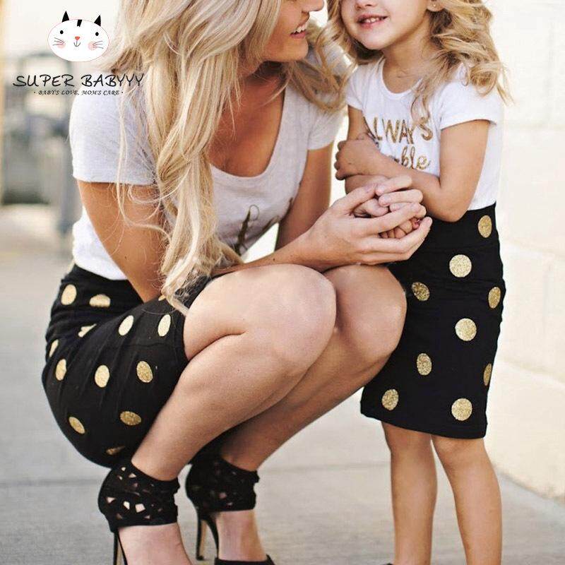 Sby Mother Daughter Matching Clothing Dot T Shirt Skirts Family