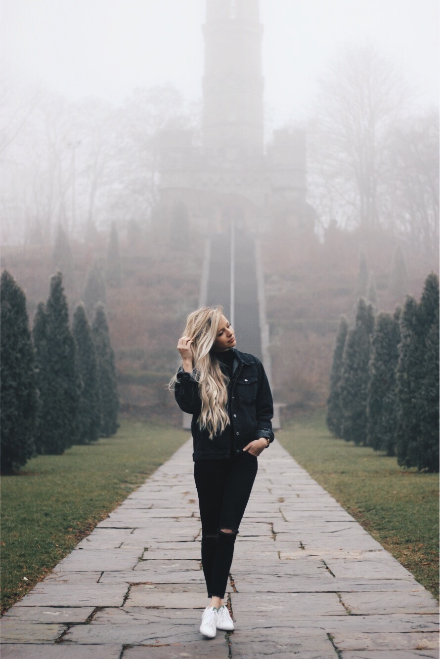 Asian Fashion Blogger Denim Jacket Look With All Black Outfit