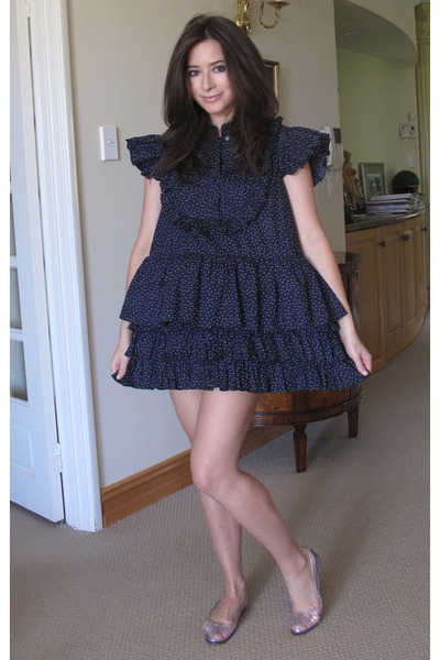Blue Karen Walker Dresses Silver Ferragamo Shoes Karen Walker