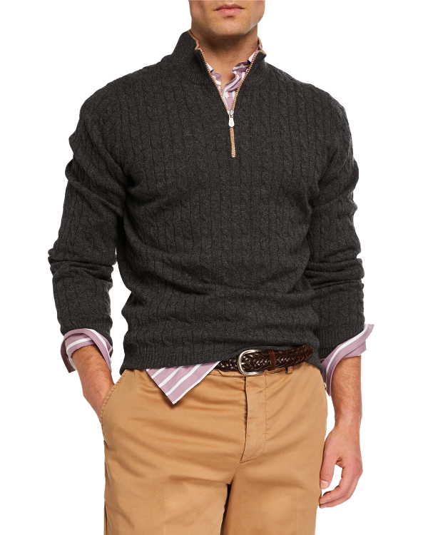 Brunello Cucinelli Men S Cable Knit Cashmere Quarter Zip Sweater