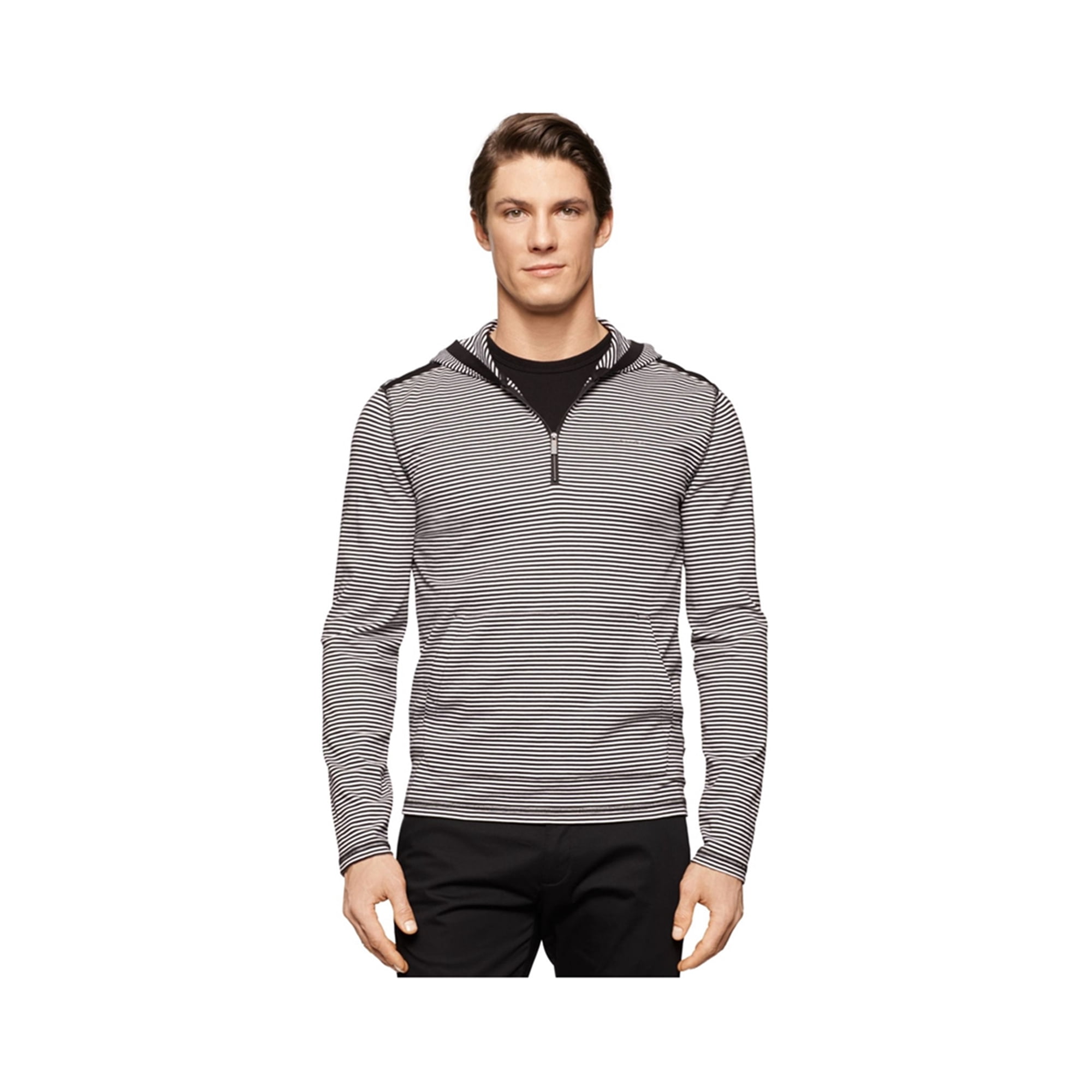 Calvin Klein Mens Striped Quarter Zip Hoodie Sweatshirt Black Xl