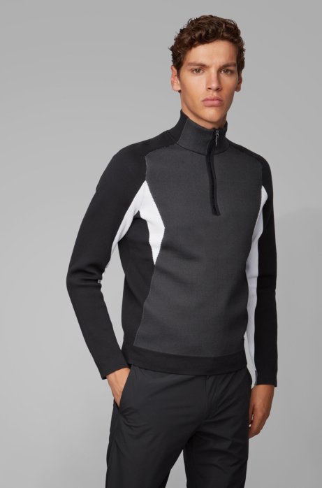 Boss Knitted Colour Block Sweater With Logo Trimmed Quarter Zip