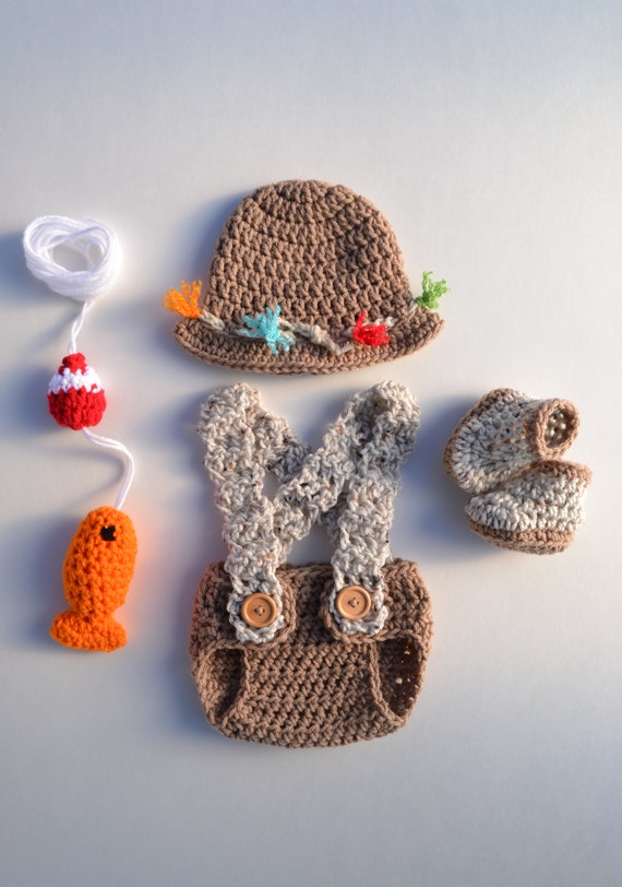 Crochet Baby Fishing Outfit Fly Fishing Fishing Hat Newborn Etsy