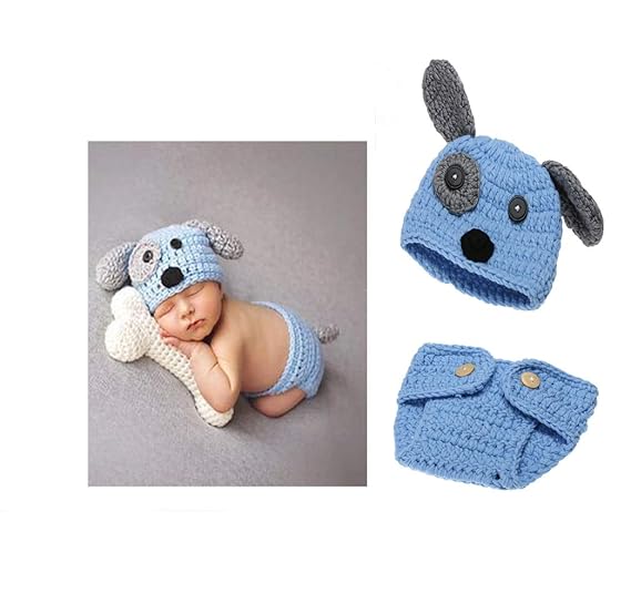 2019 Adorable Blue Puppy Newborn Outfits Handmade Knit Crochet