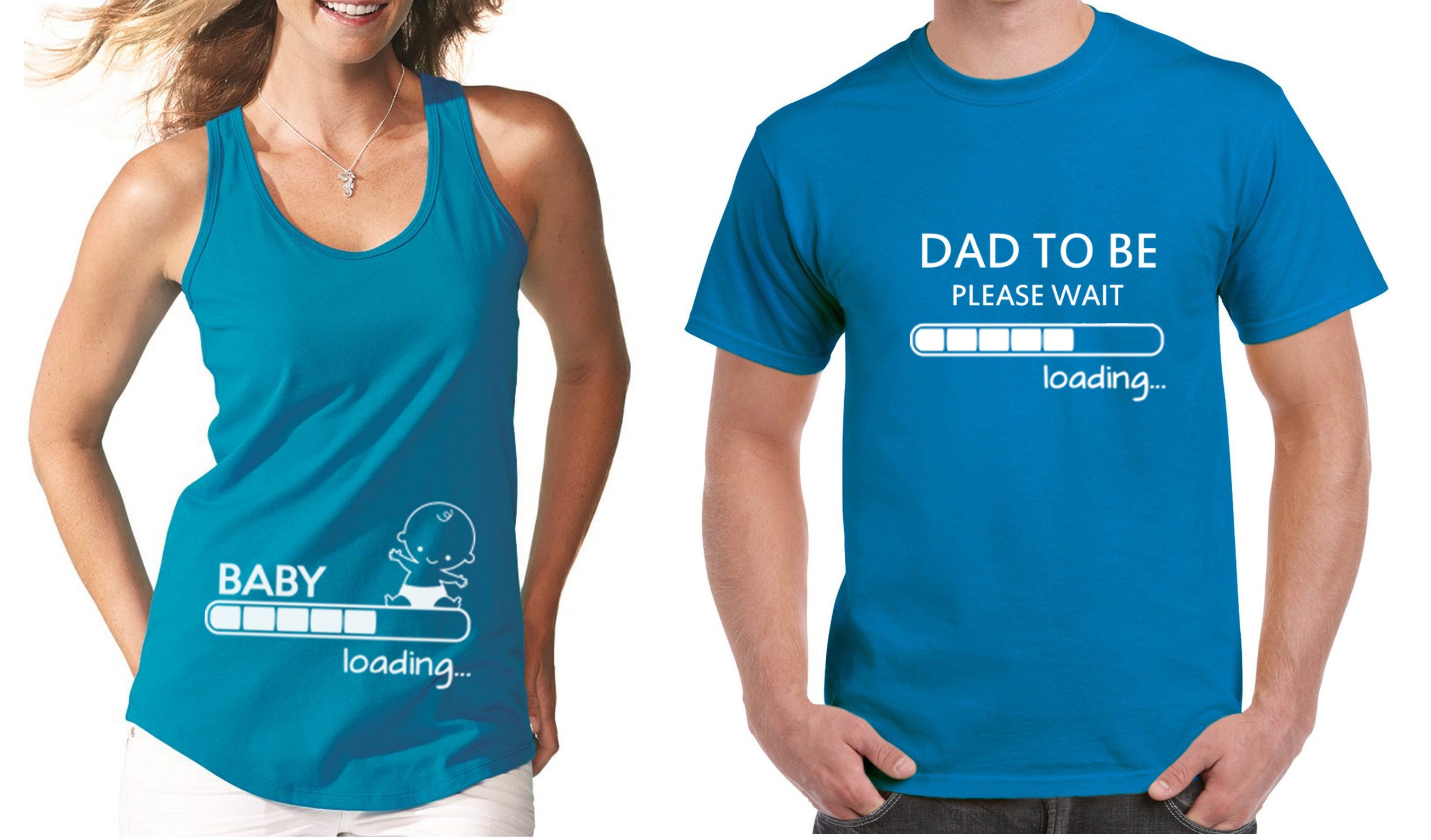 Pregnancy Announcement Couple T Shirts Set Baby Loading Dad Etsy