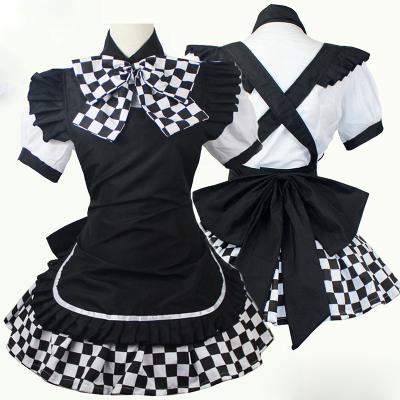 Classical Black And White Grid Cosplay Cafe Maid Clothing Anime