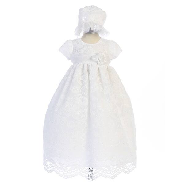 Shop Crayon Kids Baby Girls White Lace Floral Long Baptism Dress