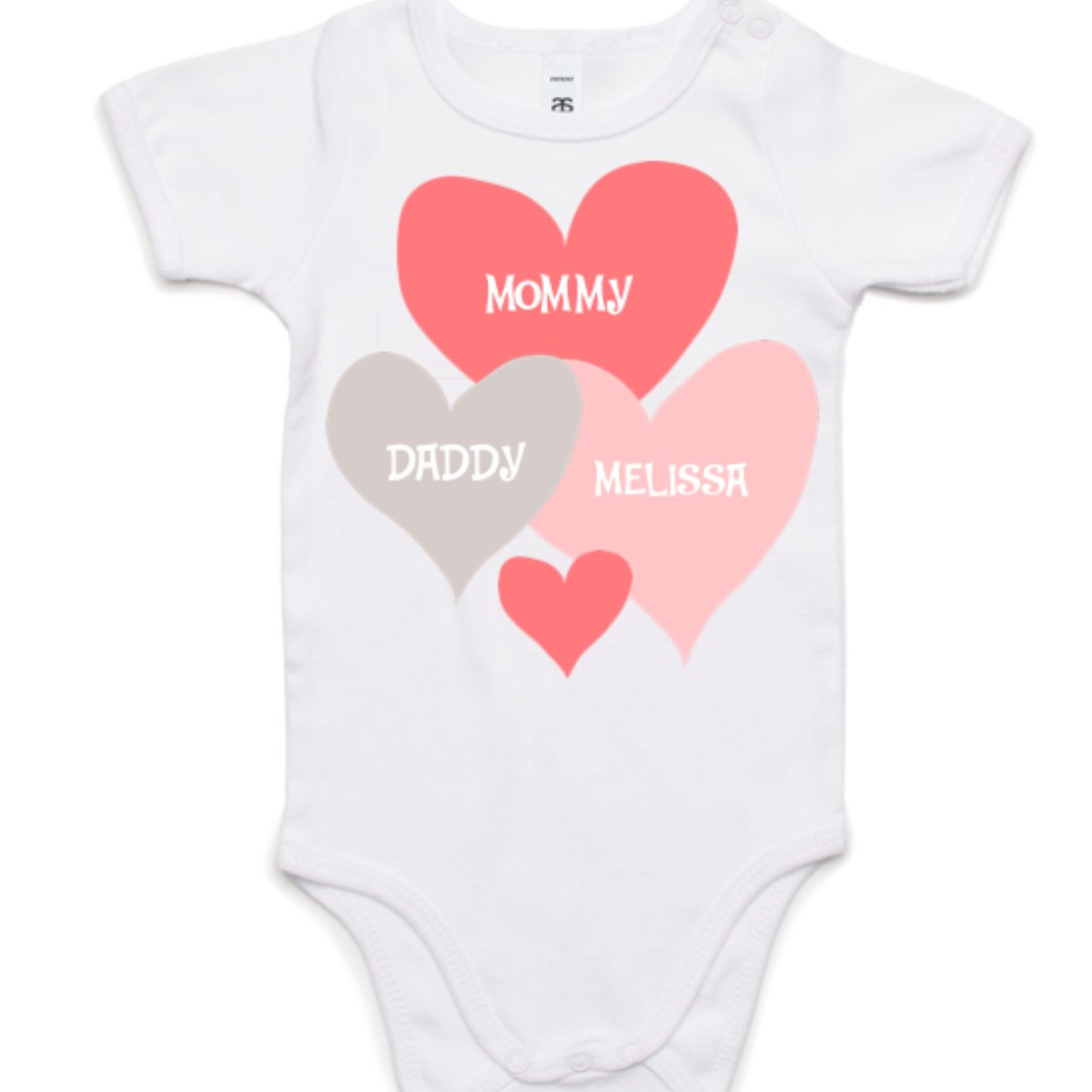 3 Hearts Family Customised Name Baby Onesie Babies Kids Babies