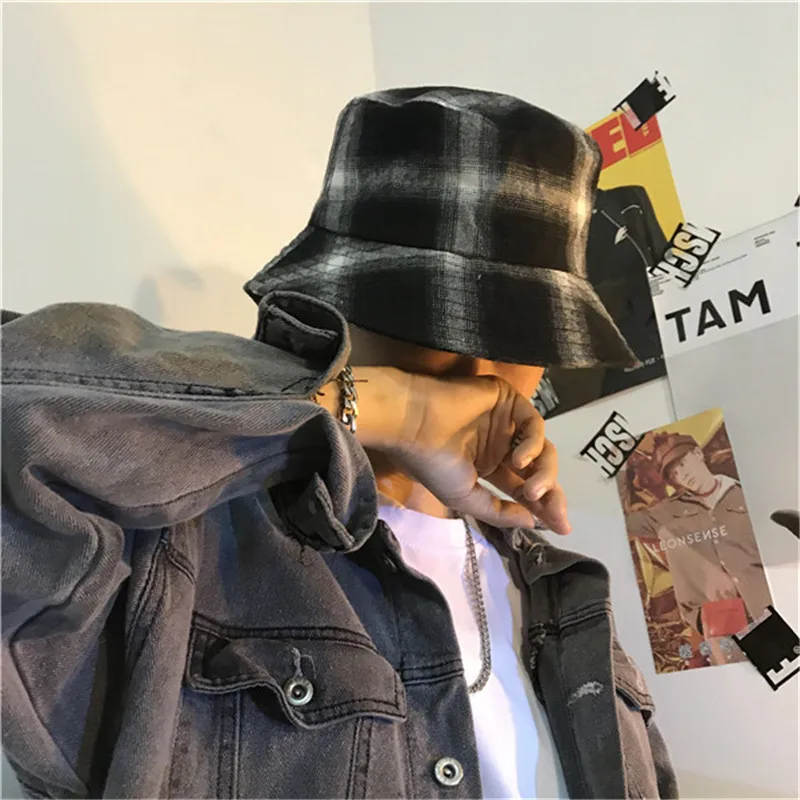 Ig Hot Checker Bucket Hat Black White Plaid Unisex Cap Women Men