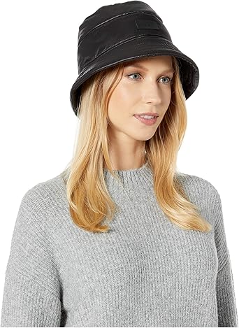 Shearling Trim Craquelure Effect Vinyl Bucket Hat Marques