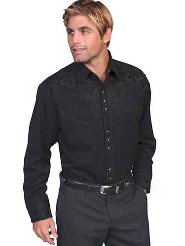 Scully Gunfighter Long Sleeve Snap Front Western Shirt Black