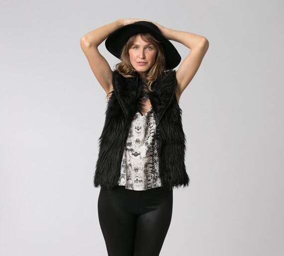 Black Faux Fur Vest Bohemian Vest Womens Black Vest Etsy