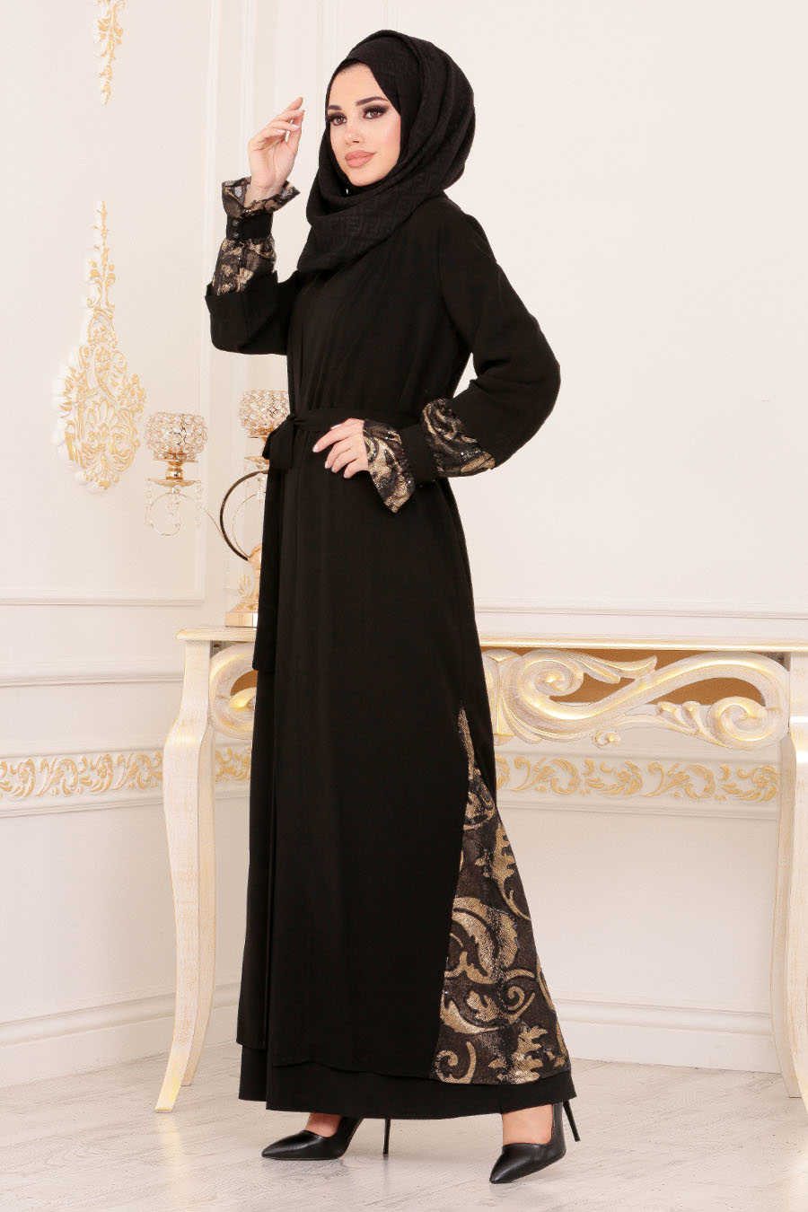 Aplikeli Siyah Tesettur Abiye Elbise 25700s Neva Style Com