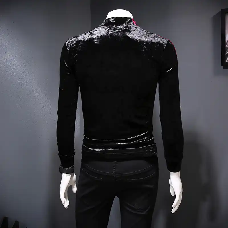 Luxury Turtleneck Embroidery Velvet Men T Shirt Club Outfit Velvet