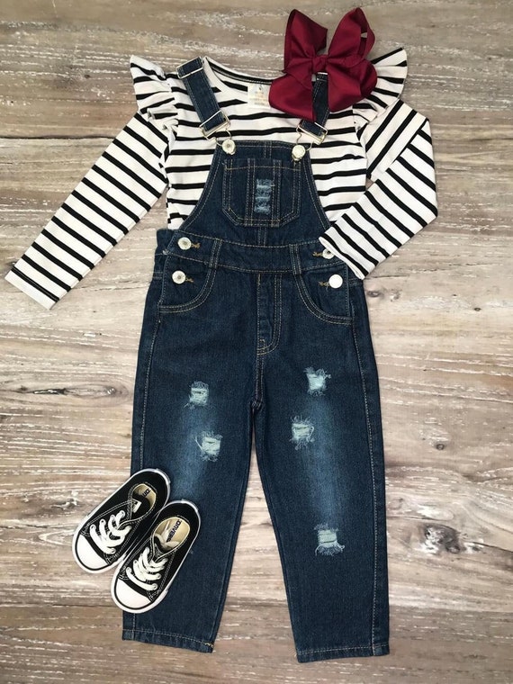 Toddler Girls Stripe Denim Overalls Outfit Set Black White Etsy