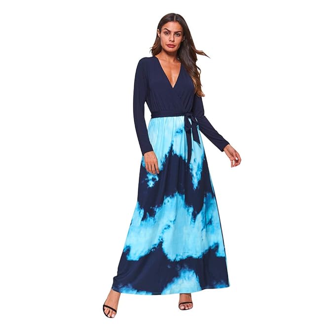 Ultramall Women Autumn Winter Bohemian Dress V Neck Casual Fashion