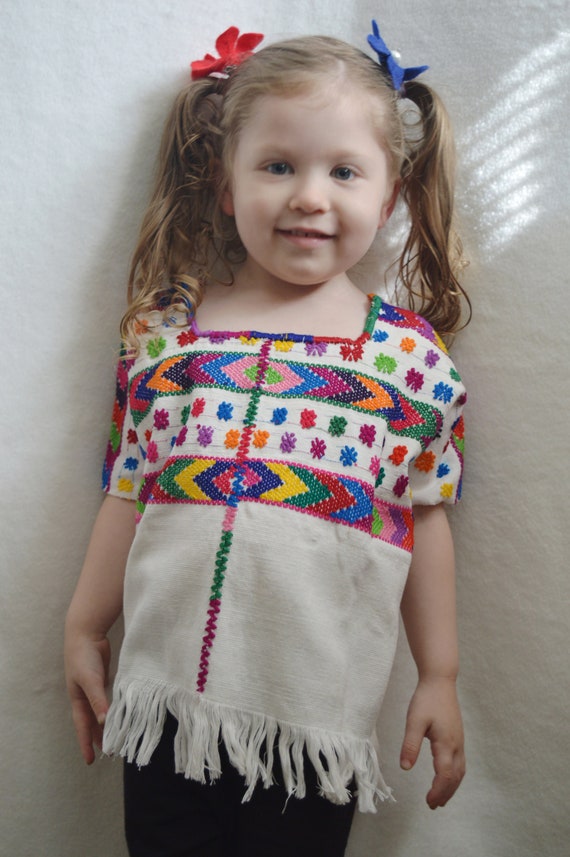 Vintage Huipil Bohemian Outfit For Kids Girls Guatemalan Huipil