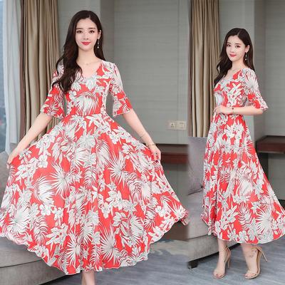 2019 New Large Size Korean Slim Bohemian Chiffon Dress Floral