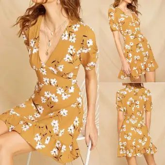 Women S Korean Style Fashion V Neck Short Sleeve Floral Print