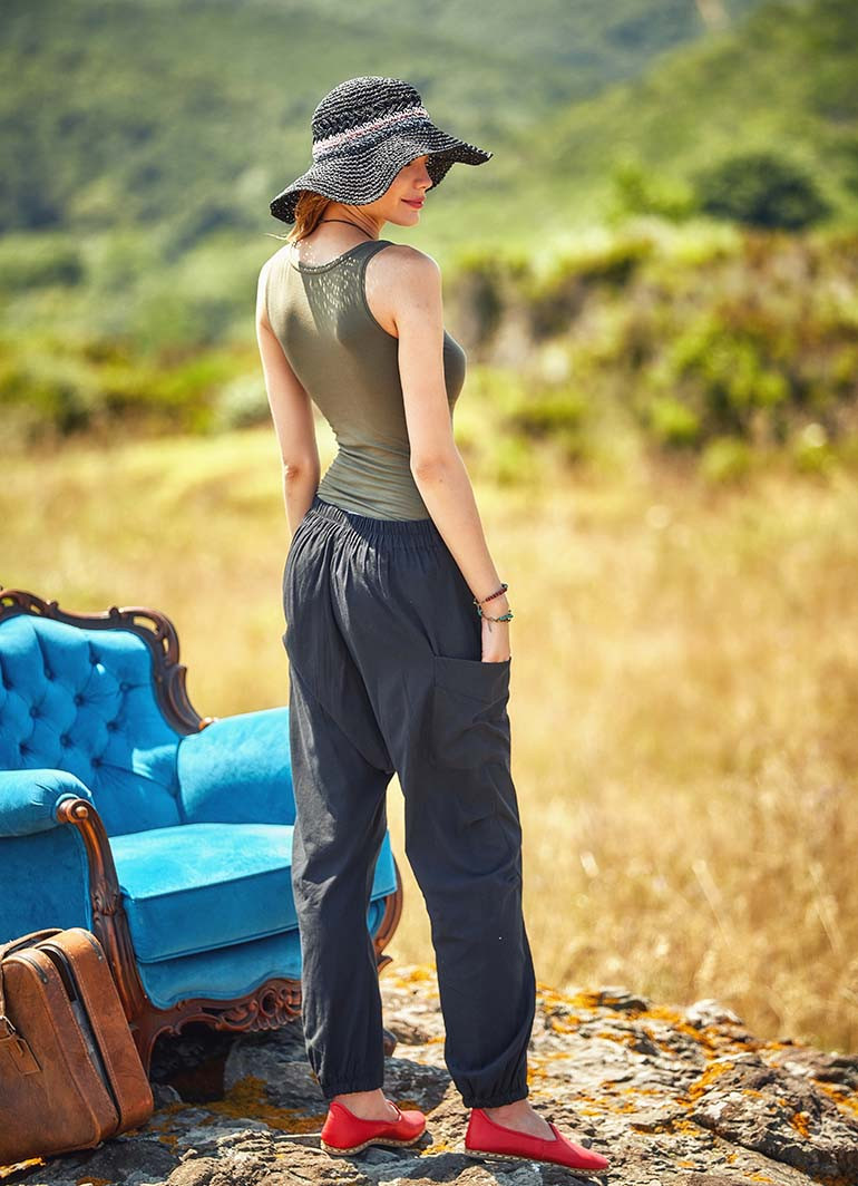 Bohemian Style Casual Black Harem Pants Wholesale Boho Clothing