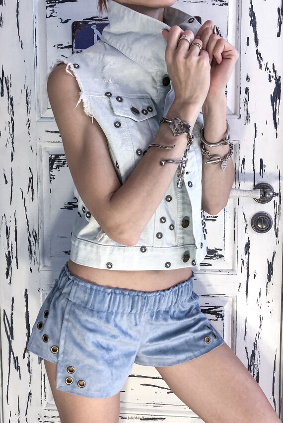 Womens Ripped Denim Vest Light Blue Hipster Jean Cropped Etsy