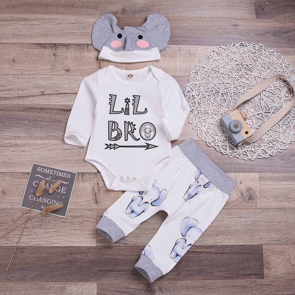 Newborn Infant Boys Little Brother Romper Pants Hat Elephant Baby