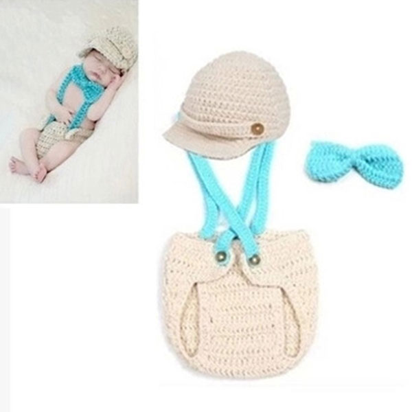 Newborn Baby Boy Crochet Hat Pants Photography Props Outfits