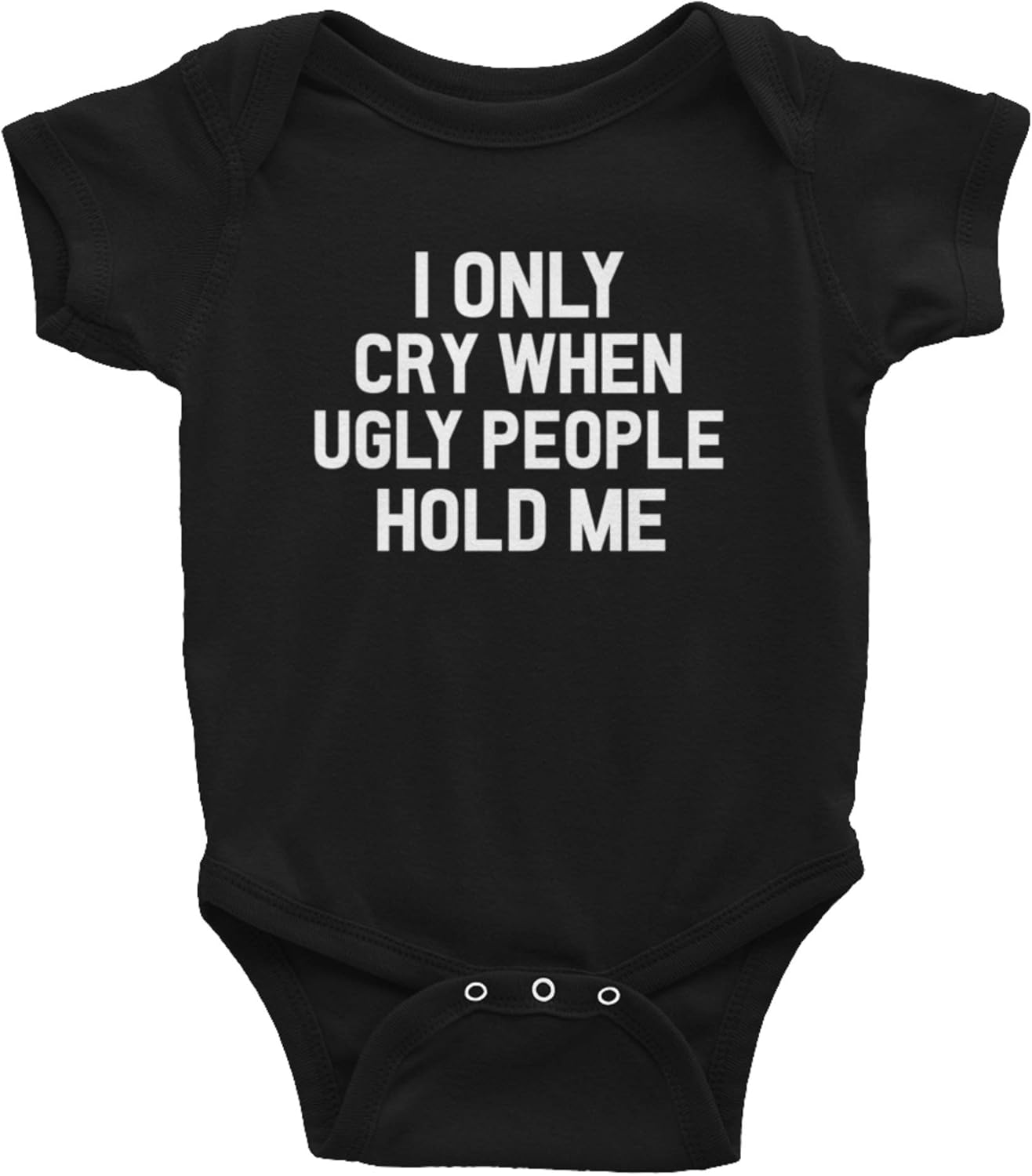 I Only Cry When Ugly People Hold Me Funny Baby Onesie Sarcastic Me