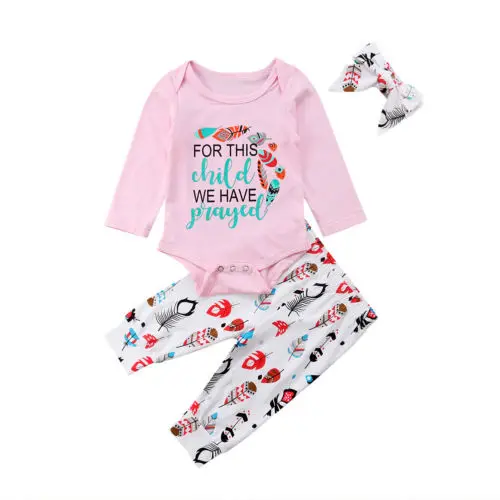 Cute Newborn Girls Outfit Feather Baby Coming Home Outfits Set