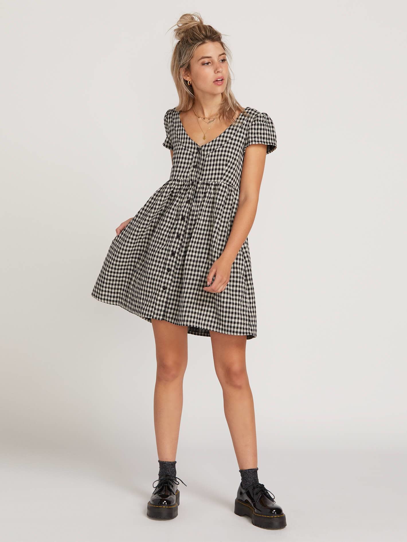 Volcom Button Up Plaid Babydoll Dress Fringe Boutique
