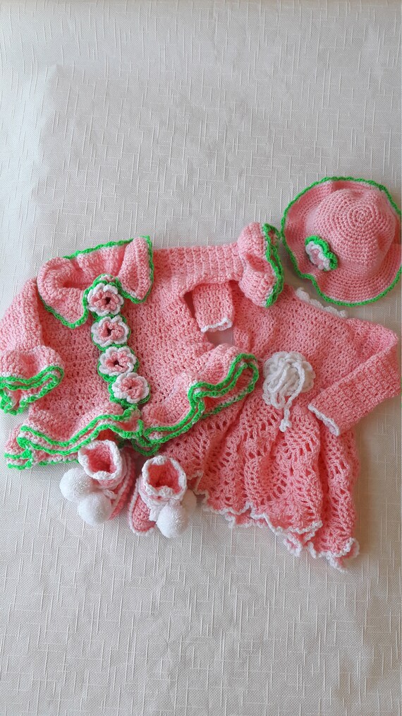 Crochet Baby Set Baby Dress Bolero Hat Shoes And Headband