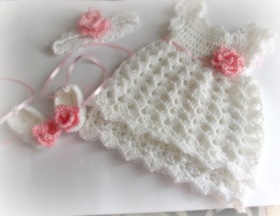 Crochet Dress Baby Girl Newborn 0 3 Months Knit Photo Prop Outfit