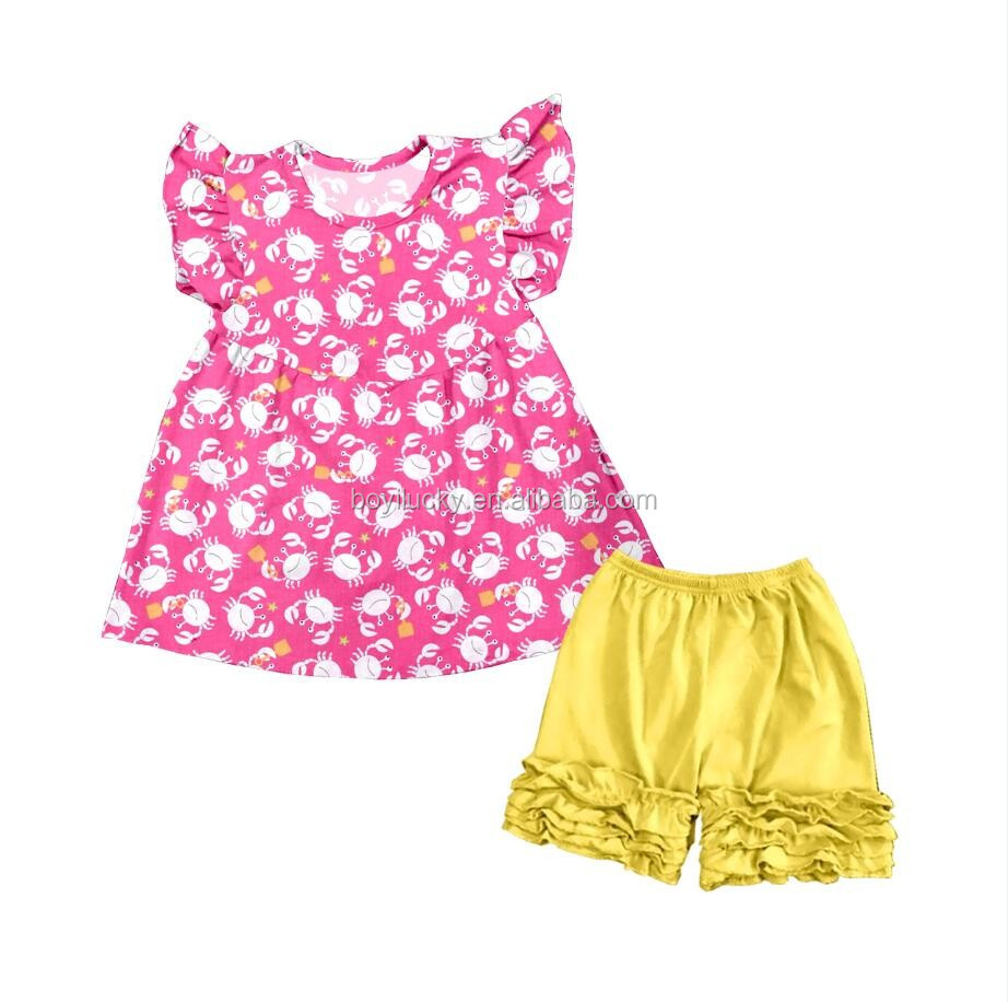 Wholesale Cute Baby Ruffled Summer Clothes Set Boutique Girl Crabs