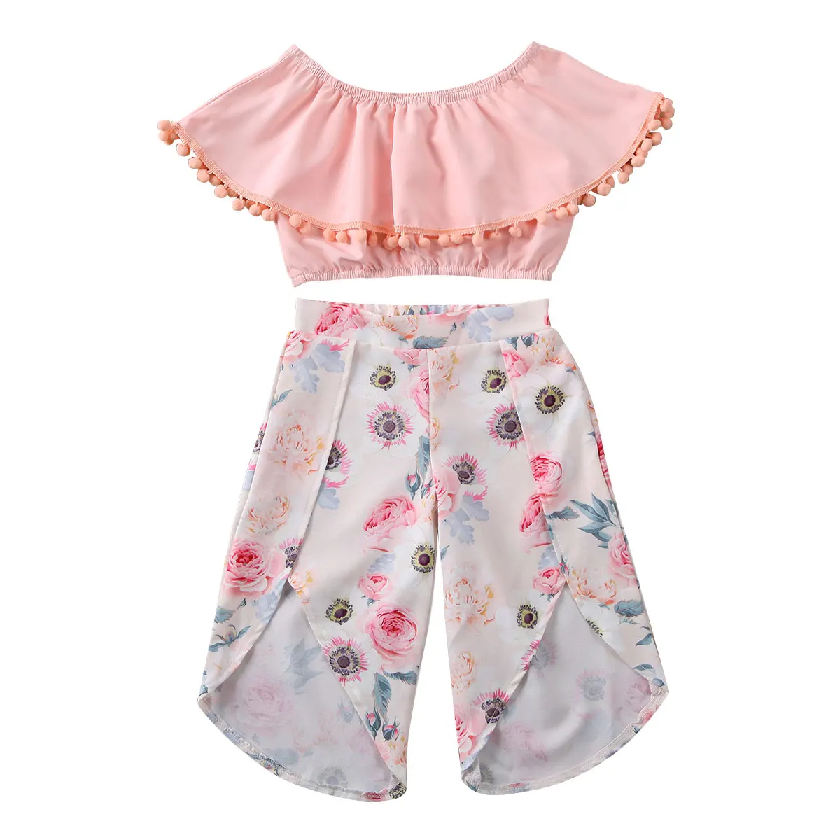 Fashion Toddler Infant Kids Baby Girls Floral Ruffle Crop Top
