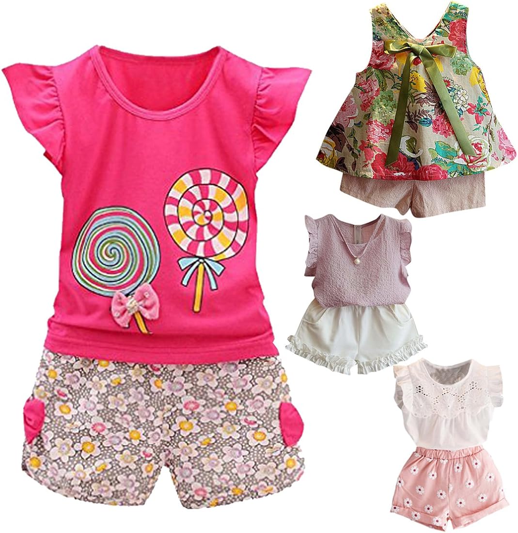 2pcs Kids Baby Girls Outfits Summer Sleeveless T Shirt Tops Shorts