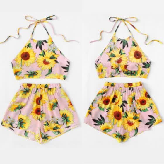 Shop Toddler Kids Baby Girls Sunflower Clothes Halter Tops Shorts