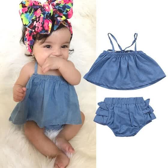 Shop Cute Newborn Infant Baby Girls Off Shoulder Denim Tops Shorts