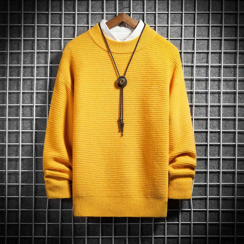 Winter Sweater Men Solid Black Yellow Fashion Minimalist Knitwear