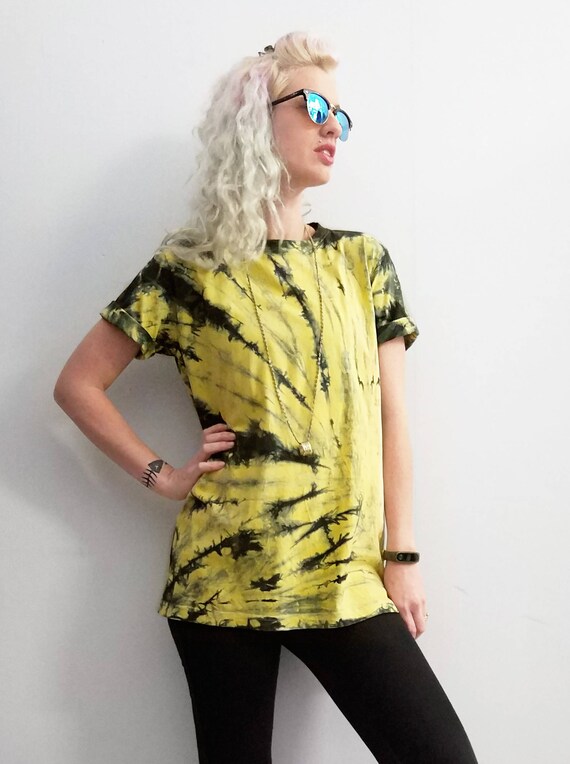 All Twisted Up Tie Dye Mens T Shirt In Cadmium Yellow Black Etsy
