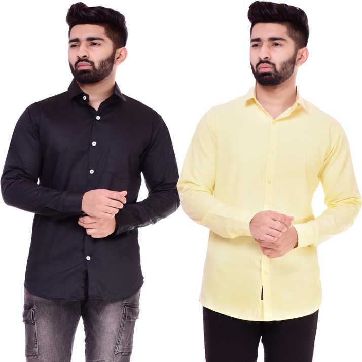 Bs Fashion Men Solid Casual Black Yellow Shirt Buy Bs Fashion